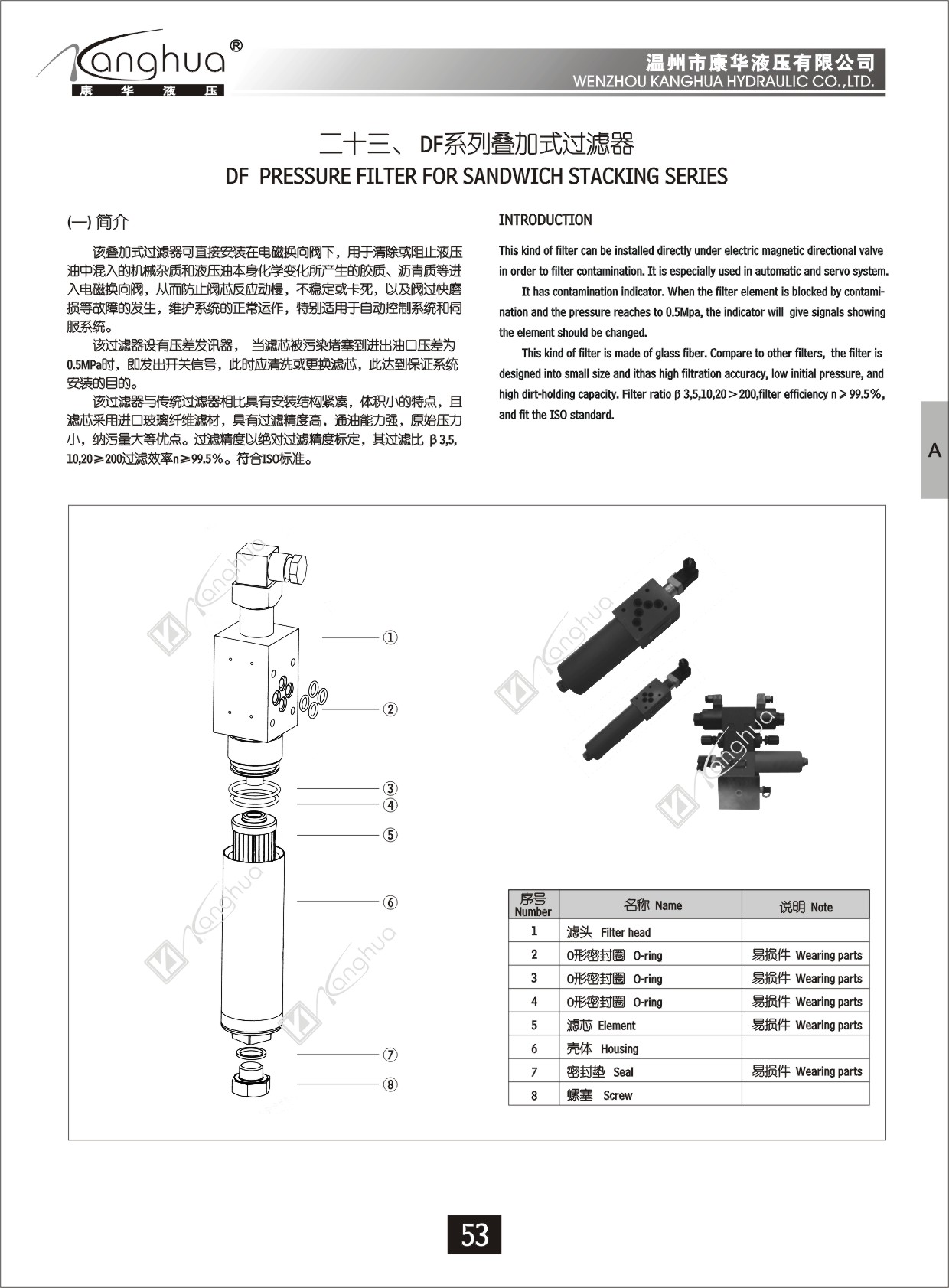 疊加式過濾器產品編號:DF-H